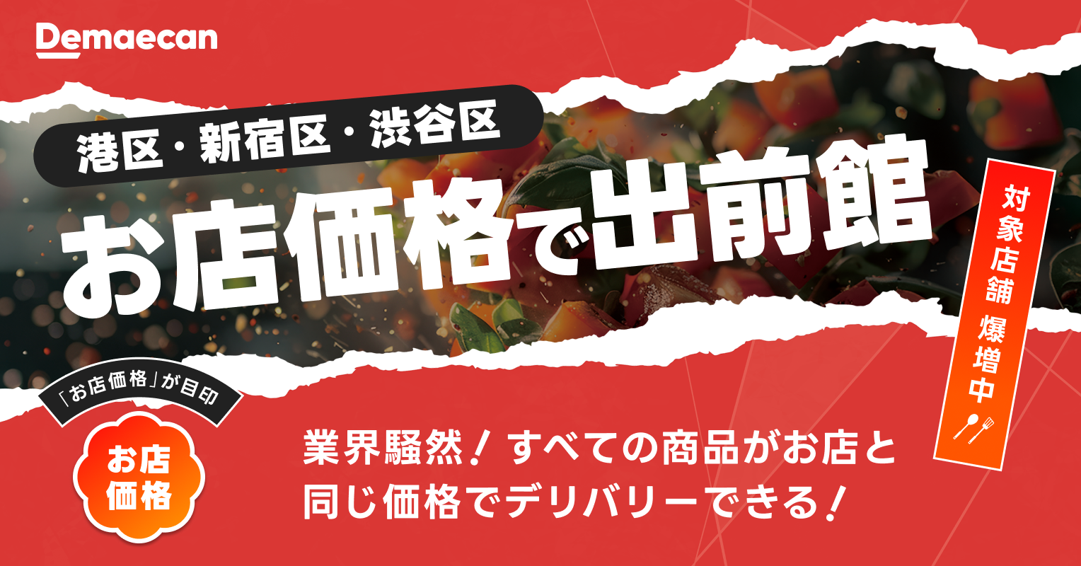 株式会社出前館は、運営する日本最大級のデリバリーサービス「出前館」において、お店と同じ商品価格でデリバリーする「お店価格で出前館」の提供エリアを拡大し、東京都内3区(港区・新宿区・渋谷区)で約760店舗が参加するトライアルを、2025年11月1日(土)〜2026年1月31日(土)で新たに開始いたします。
