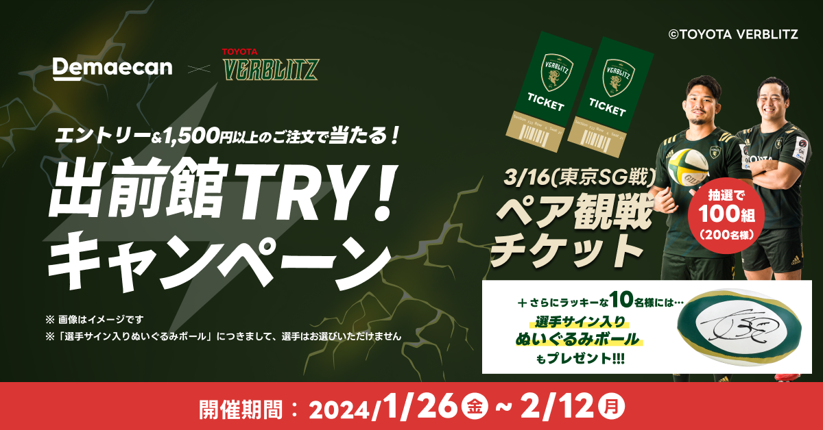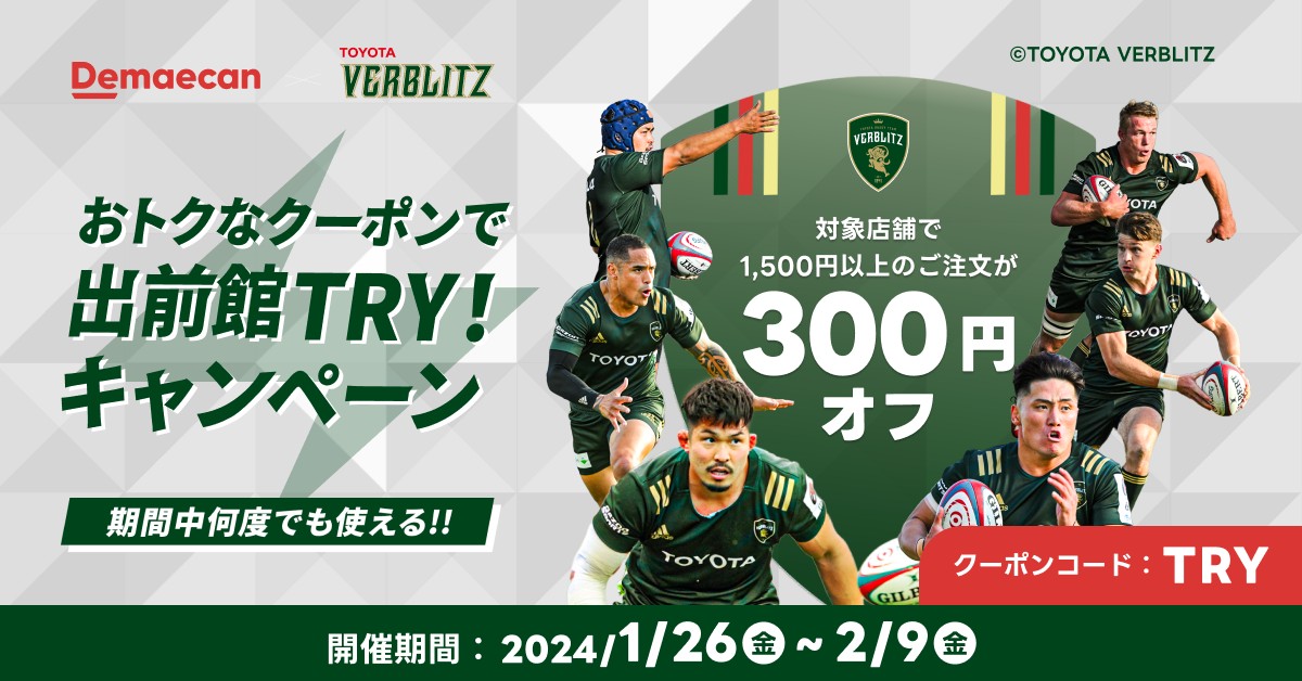 株式会社出前館(本社:東京都渋谷区、代表取締役社長:藤井英雄、以下 出前館)は、JAPAN RUGBY LEAGUE ONEに所属するラグビーチーム・トヨタヴェルブリッツと2023-24シーズンパートナーシップ契約(以下 パートナー契約)を締結いたしました。出前館ではこれを記念して1月26日(金)より愛知県エリアを対象としたキャンペーンを開始、また、翌日のホストゲームではブース出展を行います。