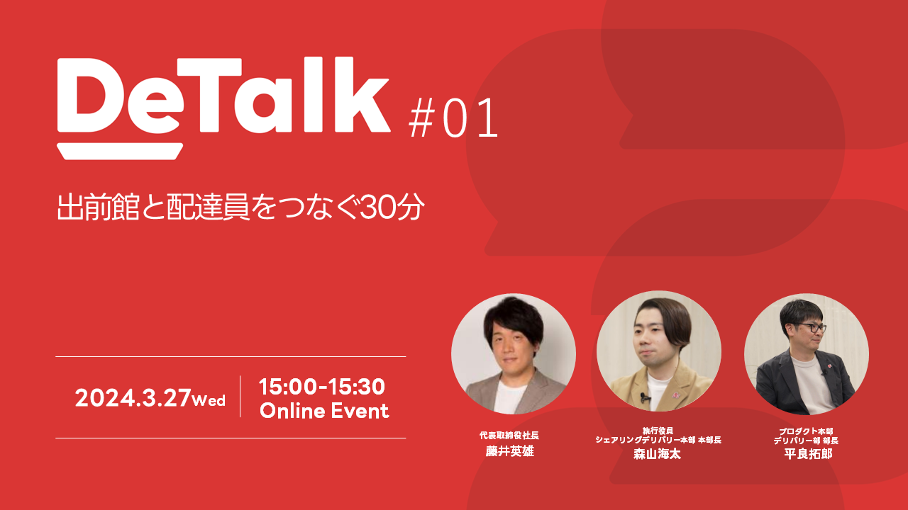 株式会社出前館は、配達員向けオンラインイベント「DeTalk 〜出前館と配達員をつなぐ30分〜」を、2024年3月27日(水)に初開催しました。